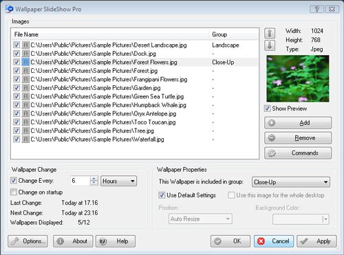 Với Wallpaper Slideshow Pro, bạn có thể tùy biến hình nền theo nhiều cách khác nhau. Ví dụ, bạn có thể thiết lập để phần mềm tự động điều chỉnh kích thước ảnh cho phù hợp với độ phân giải màn hình. Việc chuyển đổi hình nền có thể được thực hiện bằng phím tắt hoặc chỉ cần một cú nhấp đúp chuột.