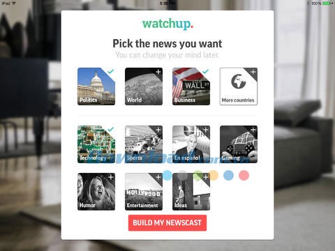Watchup for iOS nổi bật như một lựa chọn tối ưu cho việc theo dõi tin tức video, bởi dịch vụ này được thiết kế dựa trên thói quen cập nhật tin tức thường nhật của người xem. Ứng dụng được hỗ trợ bởi một mạng lưới rộng lớn các kênh tin tức địa phương, quốc gia và quốc tế.