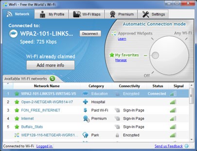 - Trả lời: WeFi có thêm các tính năng mới như tự động kết nối đến điểm truy cập không dây mà bạn chỉ định và khả năng tìm mạng Wi-Fi ở khu vực khác.