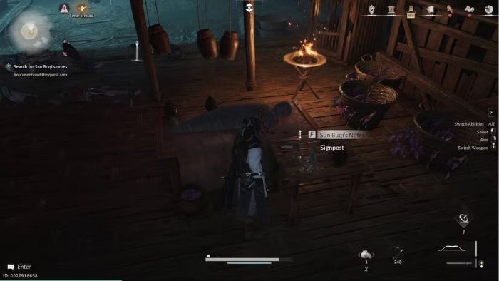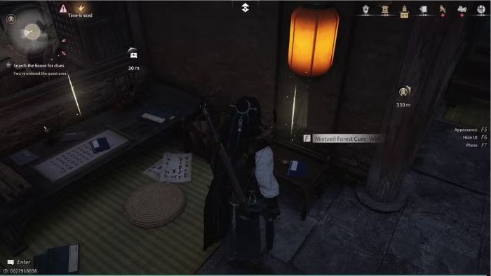 - Quay lại Wishing Cove → đọc tờ ghi chú trên bàn → bạn sẽ biết Zhai Xu đã di chuyển đến vùng hoang mạc phía bắc Mistveil Forest.