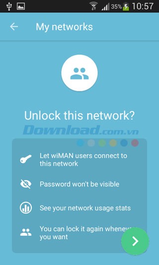 - Mở khóa truy cập các mạng Wifi được bảo vệ bằng mật khẩu và đóng góp vào cộng đồng wiMAN bằng cách chia sẻ thông tin.