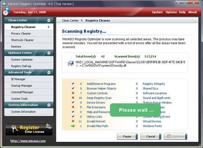 Chỉ cần chọn mục tương ứng và nhấp vào nút Scan, chương trình sẽ tự động thực hiện quá trình làm sạch.