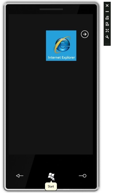 Để bắt đầu, kích vào biểu tượng Windows ở bên dưới chiếc điện thoại giả lập. Với mẫu thử nghiệm đơn giản này, chỉ có Internet Explorer được tích hợp.