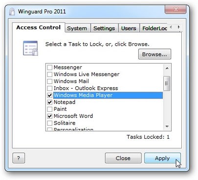 WinGuard Pro đảm bảo an ninh cho máy tính bằng cách yêu cầu mật khẩu trước khi truy cập bất kỳ ứng dụng hoặc file thực thi (*.exe) nào.