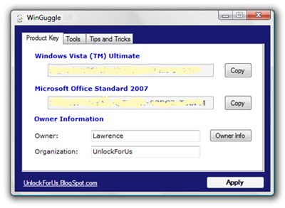 WinGuggle được thiết kế như một công cụ hỗ trợ hữu ích, cho phép người dùng khôi phục lại khóa (key) bản quyền của hệ điều hành Vista trong trường hợp bị quên hoặc đánh mất.