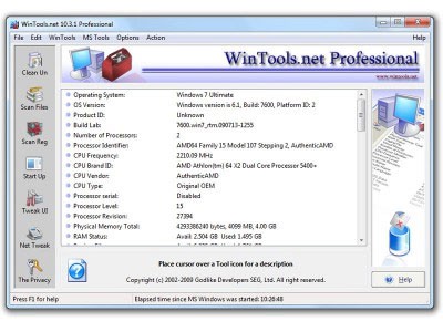 WinTools.net Ultimate tích hợp nhiều công cụ hữu ích, bao gồm: Clean Uninstaller, Scan Files, Scan Shortcuts, Scan Registry, Startup Manager, Tweak UI, Net Tweaker, công cụ bảo vệ riêng tư, Invisible Man và File Shredder.