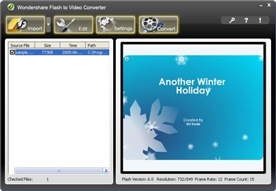 Wondershare Flash to Video Converter là một phần mềm độc lập cho phép chuyển đổi các file Macromedia Flash (.swf) sang các dạng file video thông dụng, có thể xem được trên PC, iPod, PSP, Zune và các thiết bị điện thoại di động.