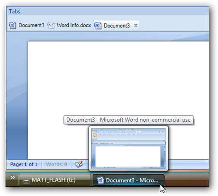 Khi sử dụng Doc Tabs, bạn sẽ chỉ thấy một biểu tượng duy nhất trên thanh Taskbar, ngay cả khi có nhiều tài liệu đang mở. Điều này giúp bạn dễ dàng chuyển đổi giữa các tài liệu và các ứng dụng khác bằng tổ hợp phím Alt-Tab.