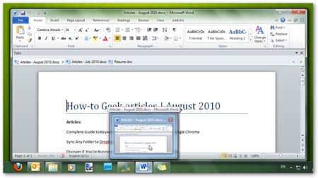 Tiện ích Doc Tabs cũng tương thích với Word 2010 và hoạt động tốt khi bạn chỉ tập trung vào việc soạn thảo văn bản.