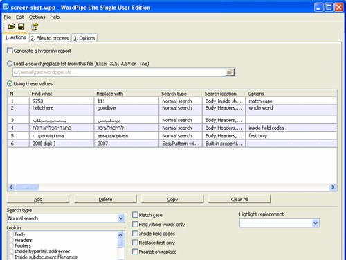 Công cụ này cho phép tìm kiếm và thay thế đồng loạt trong nhiều tài liệu Microsoft Word. Khả năng của nó bao gồm việc cập nhật các siêu liên kết và đường dẫn UNC khi tên máy chủ thay đổi, cũng như điều chỉnh thông tin như tên, địa chỉ và số điện thoại.
