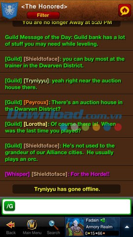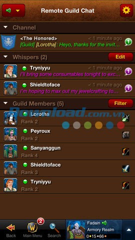 Ứng dụng này cho phép bạn duy trì liên lạc thường xuyên với các thành viên trong tổ đội, đồng thời không bỏ lỡ bất kỳ cuộc thảo luận nào thông qua tính năng Remote Guild Chat. Thông qua World of Warcraft Armory, bạn có thể theo dõi và tham gia vào các cuộc trò chuyện của nhóm một cách trực tiếp, cũng như tương tác với các đồng đội khác.