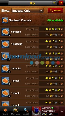 Thông qua ứng dụng, người chơi có thể tìm kiếm các vật phẩm trong game World of Warcraft và truy cập Auction House để theo dõi các phiên đấu giá trực tuyến.