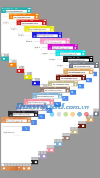 - Người dùng cũng có thể tùy chỉnh màu sắc giao diện bằng cách nhấn vào nút cài đặt. Ứng dụng cung cấp 30 tùy chọn màu cho thanh công cụ, 11 màu cho nền trình duyệt và 5 màu khác nhau cho các biểu tượng.