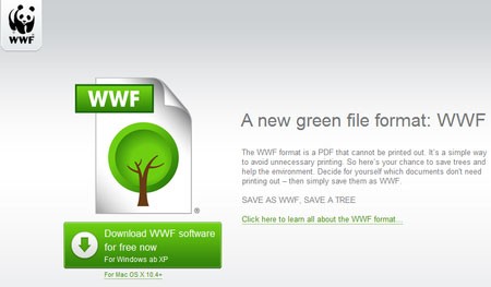Hướng tới mục tiêu nâng cao nhận thức về bảo vệ môi trường và giảm thiểu tác động tiêu cực từ việc in ấn, Quỹ quốc tế về bảo vệ thiên nhiên (WWF) đã giới thiệu một định dạng tập tin mới, mang tên .wwf.