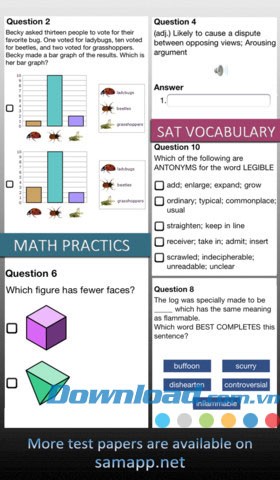 Người dùng có thể tải xuống các bài thi này từ trang web chính thức của nhà phát hành Sam App.