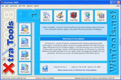 Mục đích chính của XtraTools 2008 là giúp người dùng tối ưu hóa hiệu năng làm việc và đơn giản hóa quá trình sử dụng các tiện ích sẵn có của hệ điều hành MS Windows.