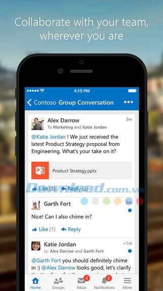 Với Yammer for iOS, việc giao tiếp nội bộ trở nên dễ dàng và nhanh chóng hơn bao giờ hết, giúp tăng cường sự gắn kết giữa các nhân viên.