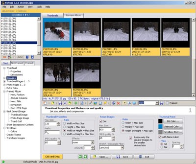 Sau khi hoàn tất quá trình thiết kế, YoPoW sẽ xuất Album ảnh dưới định dạng HTML, cho phép bạn xem trước kết quả trực tiếp trên trình duyệt web. Bạn cũng có thể chọn chế độ hiển thị dưới dạng Thumbnails để có cái nhìn tổng quan về Album.