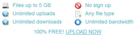 Dịch vụ này cho phép người dùng sử dụng mà không cần phải đăng ký tài khoản. Không có giới hạn về số lượng tập tin được tải lên từ một thiết bị, cũng như không giới hạn băng thông hay số lần tải xuống của mỗi tập tin. Hơn nữa, dịch vụ hỗ trợ đa dạng các định dạng tập tin khác nhau.