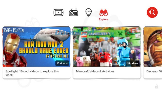 - Mục Khám phá (Explore) mở ra một thế giới nội dung thú vị, giúp trẻ khám phá những sở thích mới hoặc tìm hiểu sâu hơn về các chủ đề mà chúng quan tâm.