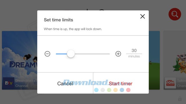 Trẻ em có thể thưởng thức video toàn màn hình với tính năng tự động phát liên tục. Đồng thời, phụ huynh có thể sử dụng bộ đếm giờ để giới hạn thời gian xem của bé. Khi thời gian kết thúc, ứng dụng YouTube Kids sẽ tự động đóng lại.