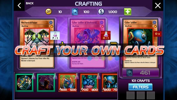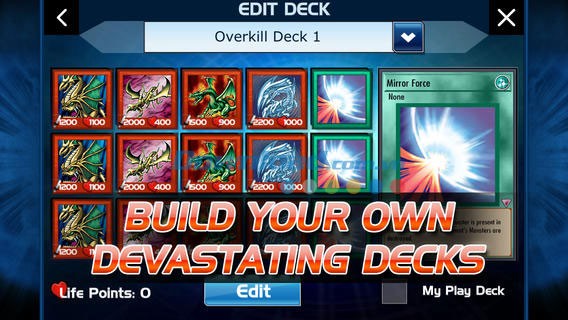 - Tự do hình thành bộ bài cá nhân từ hơn 500 lá bài Yu-Gi-Oh! khác nhau.