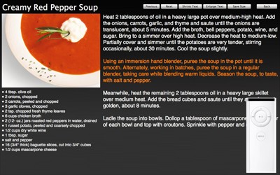 - YummySoup! thậm chí còn có thể hỗ trợ bạn trong quá trình nấu nướng, tích hợp màn hình cảm ứng, và tương thích với Apple Remote thông qua công nghệ nhận diện giọng nói (text to speech).