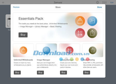 Những tính năng nổi bật của ứng dụng Zamurai Mobile Whiteboard dành cho iPad:
