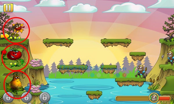 Nhân vật được giải cứu sẽ trở thành xạ thủ mới của level tiếp theo, có thể là cà chua (với khả năng hạ gục zombie chỉ với hai lần ném) hoặc trái lê (với khả năng bay nhảy và tấn công trực tiếp).